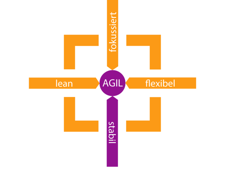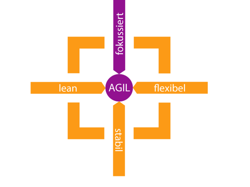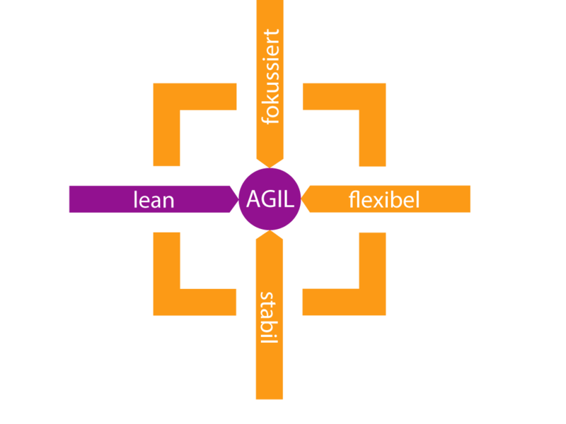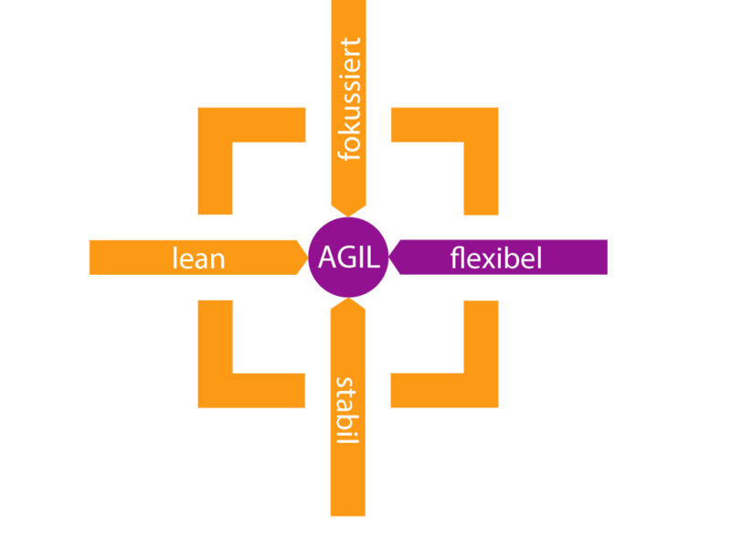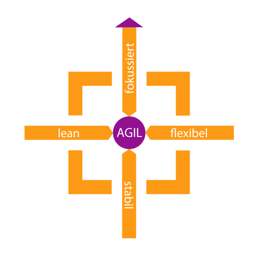 Mittels agiler Techniken, Prinzipien und Werte können wir Veränderungen in der Unternehmenswelt beständig durchlaufen und komplexe Strukturen nachhaltig und profitabel angehen.