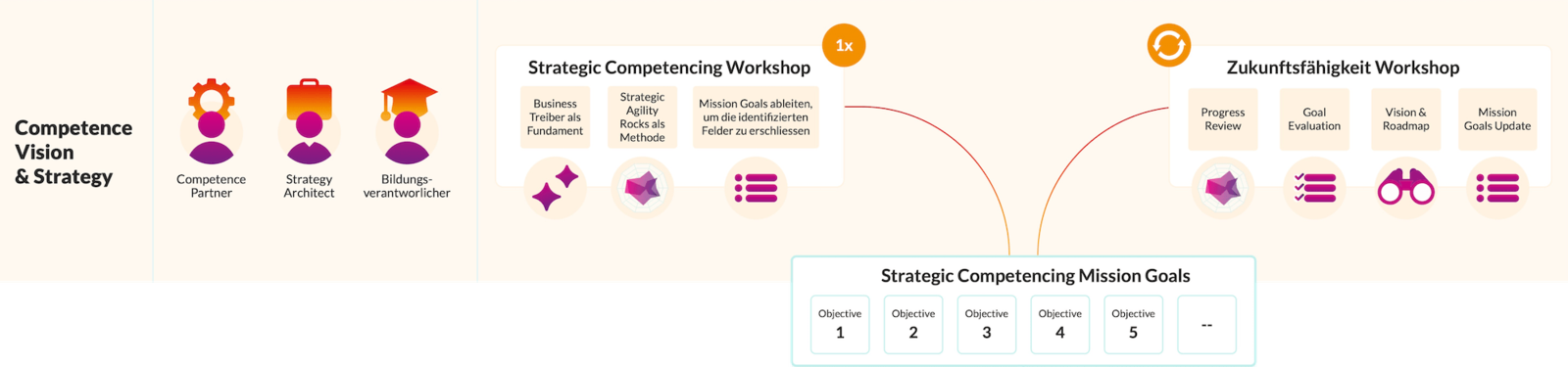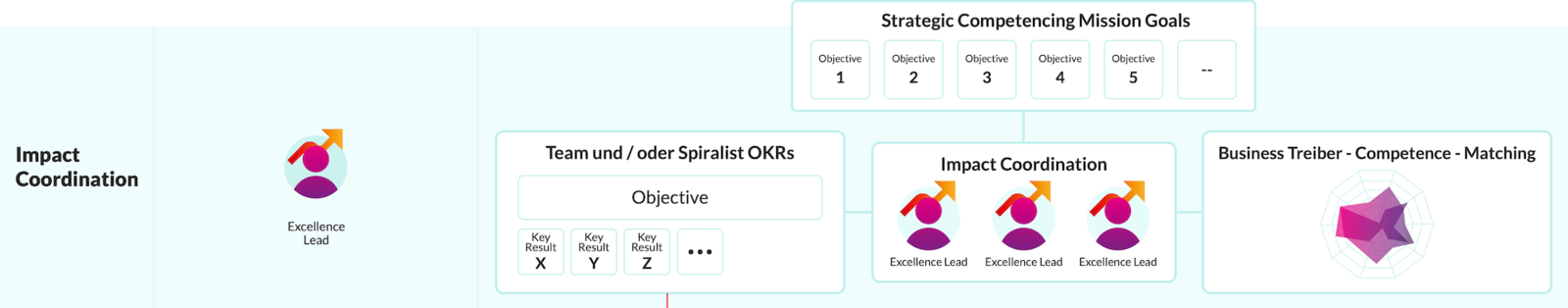 Die Excellence Leads (Mentoren, Fachexperten, etc.) unterstützen die zielgerichtete Kompetenzentwicklung und das Erreichen der Ziele und v.a. die kollektive Umsetzung und Nutzung der Lösungen.