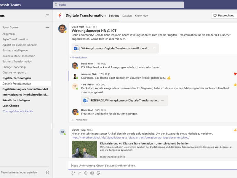 Alle MS Teams- und Spiral Square-Funktionen sind miteinander integriert.