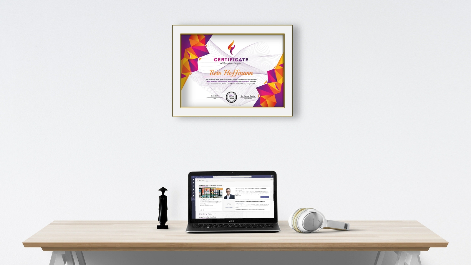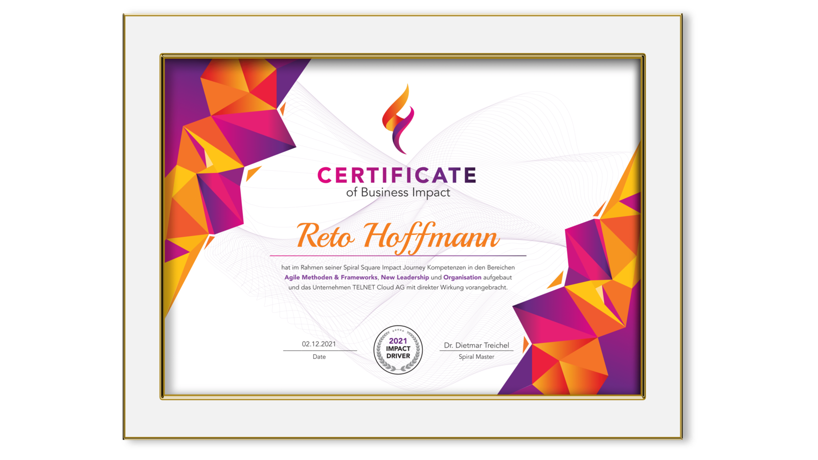 Natürlich bleiben wir unserem Fokus auf Wirkung auch hierbei treu! Das Zertifikat wird nicht für die Teilnahme vergeben, sondern für Business Impact, der durch den Aufbau der effektiven Kompetenzen erreicht wird.